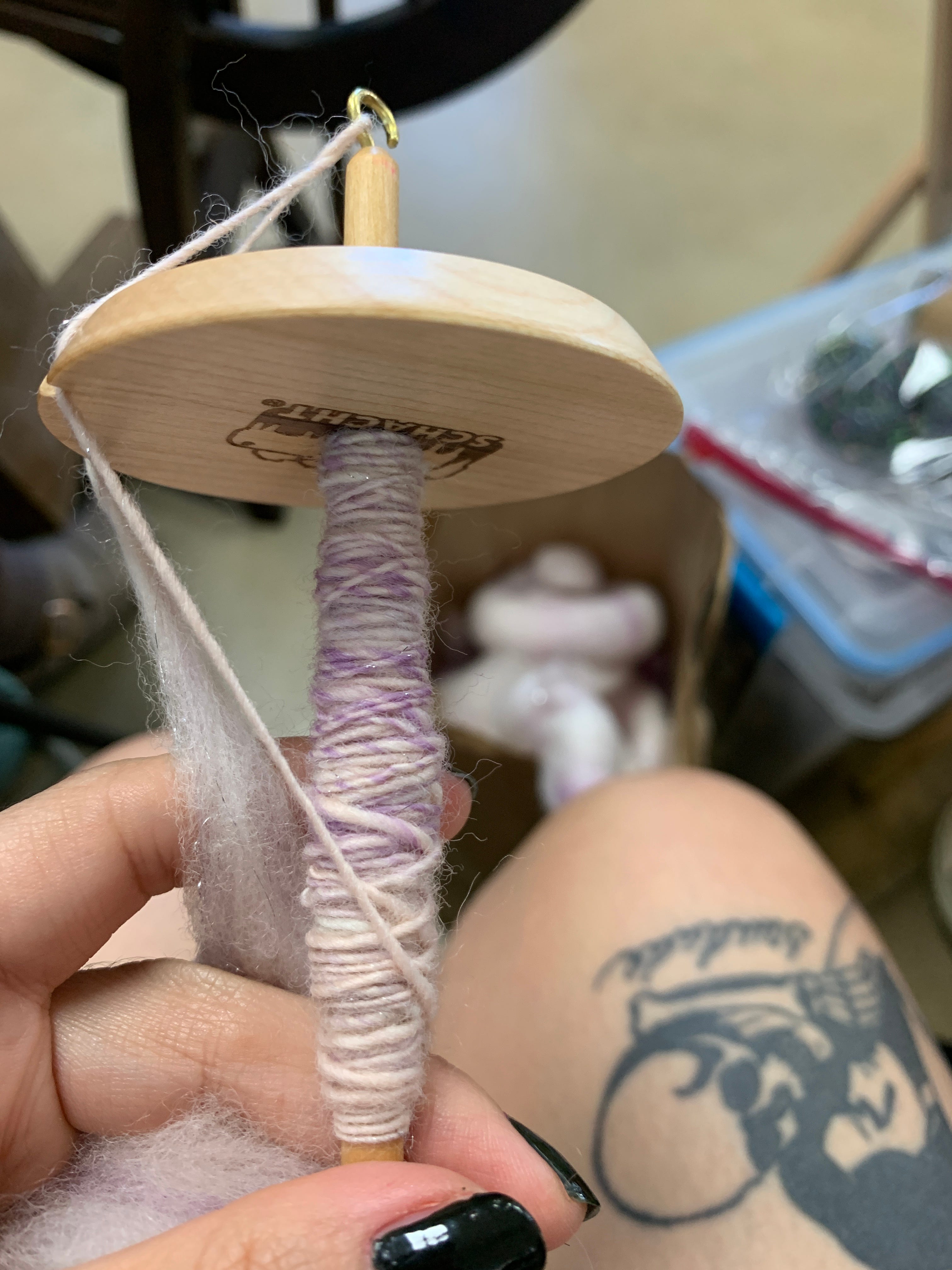 And I’m not just talking about knitting. I started my first effort at blending fiber and spinning my first custom yarn a few months ago. I learned to spin a year or so ago with the help of the fine folks over at Tempe Yarn, and I really enjoyed it. However, spinning wheels cost a lot of money and until I can procure one, I didn’t think much of it. A few months back I signed up for a blending class at the same place, where we used a drum carder and other tools to custom blend our own yarn. I was locked in after that. I purchased a drop spindle while I await the day I get a full on wheel, and I have been slowly chipping away at spinning all of the fiber I blended during the class. It’s taken at least 6 months since I haven’t been doing it consistently, but I’m nearly there and so excited to finish and ply it!